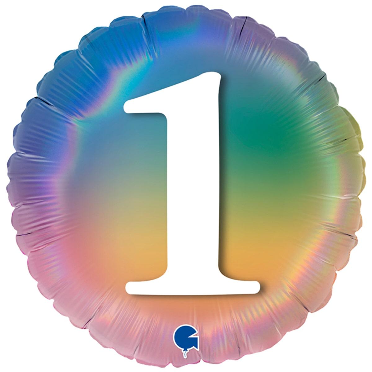 G 18" УП Омбре веселка цифра 1. Фольгована куля на День народження